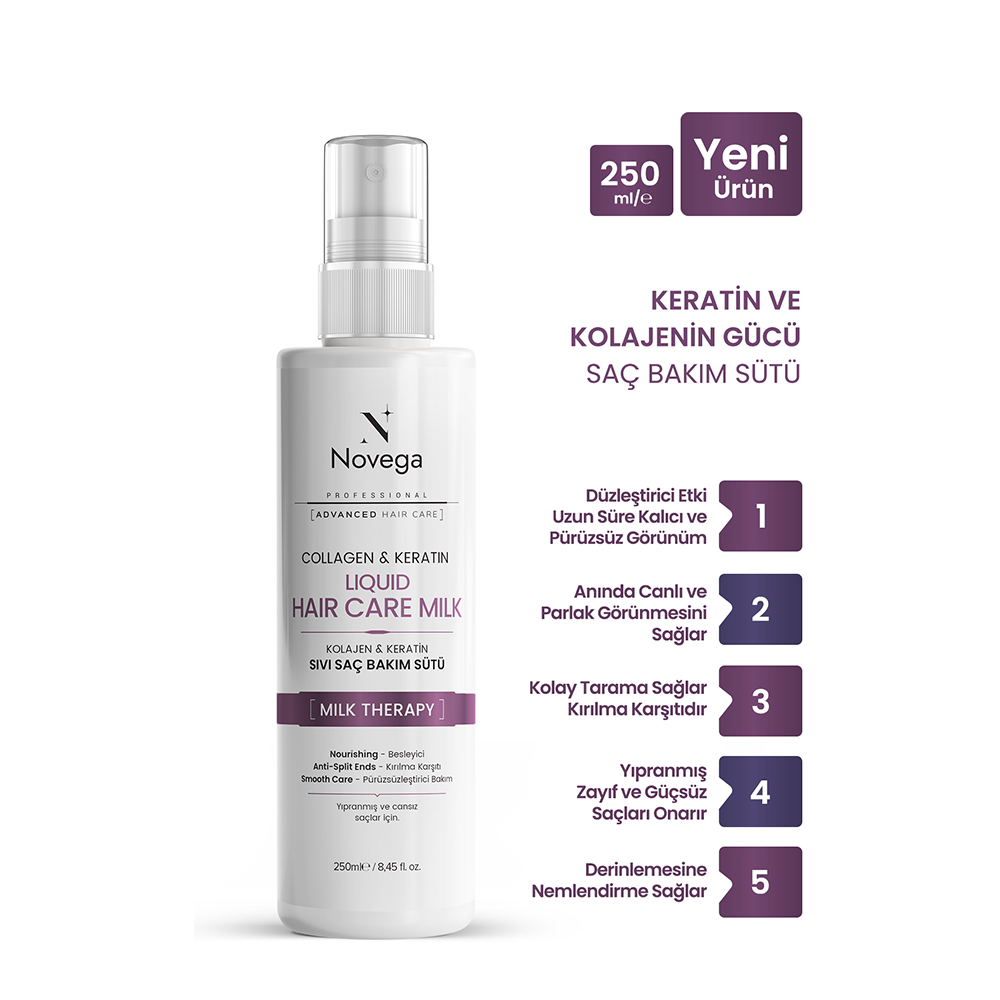 Novega Keratin Collagen Sıvı Saç Sütü - Düzleştirici ve Onarıcı Etki